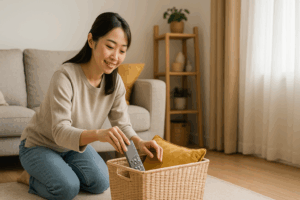 “使ったら戻す”、”週に一度はリセット”を心がけると、散らかりを防げます。収納場所の定位置化も大切です。