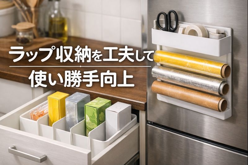 そんなときは、まずラップ収納から整えてみるのも良い方法です。よく使うアイテムだからこそ、少し見直すだけでもキッチン全体の使い心地が改善します。